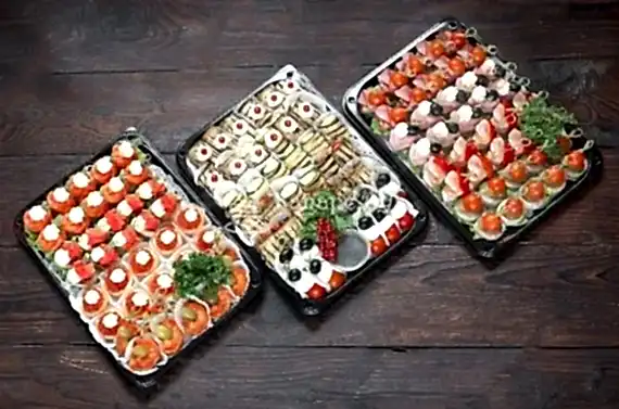 Набор из трех подносов: Поднос 1. Канапе с ветчиной, Pin Up 10 шт.